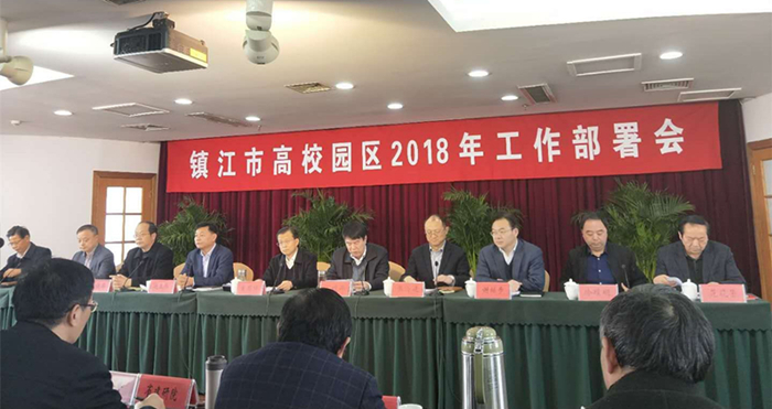2018年3月12日,镇江市高校园区指挥部于丹徒区政府8楼会议室召开2018年高校园区工作部署会,镇江市委常委、宣传部长、高校园区总指挥童国祥,副市长、高校园区副总指挥孙晓南,高校园区常务副总指挥赵玉华,丹徒区长谢继步,丹徒区委副书记谈沁磊等领导出席会议。